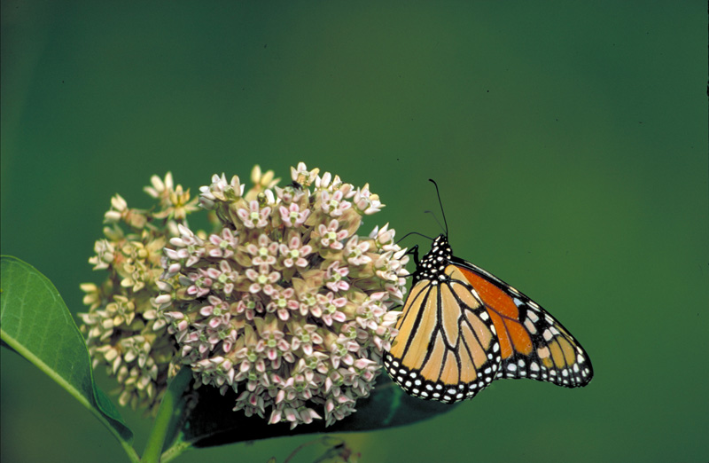 Eating milkweed causes the monarch to store alkaloid. This makes it taste horrible to predators! This is such an effective protection from predators, the the viceroy butterfly has adapted to look like the monarch so predators will leave it alone too!