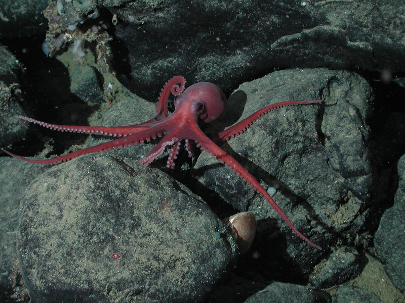 phytoplanktonOctopus are mollusks like squid. There are about 200 species of octopus. There are two large groups of octopus. The cirrata or finned octopuses live in the deep sea at depths of between 1000 and 24,000 feet. About 85% of octopus are in the incirrata group. They have no fins and live in shallow water in caves or crevices.