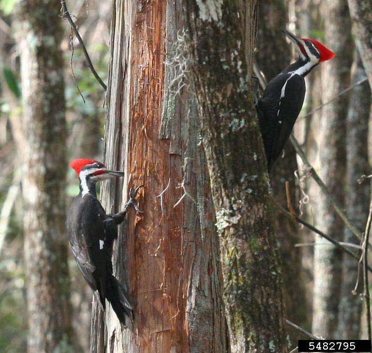 The pileated woodpecker lives in coniferous and deciduous forests.