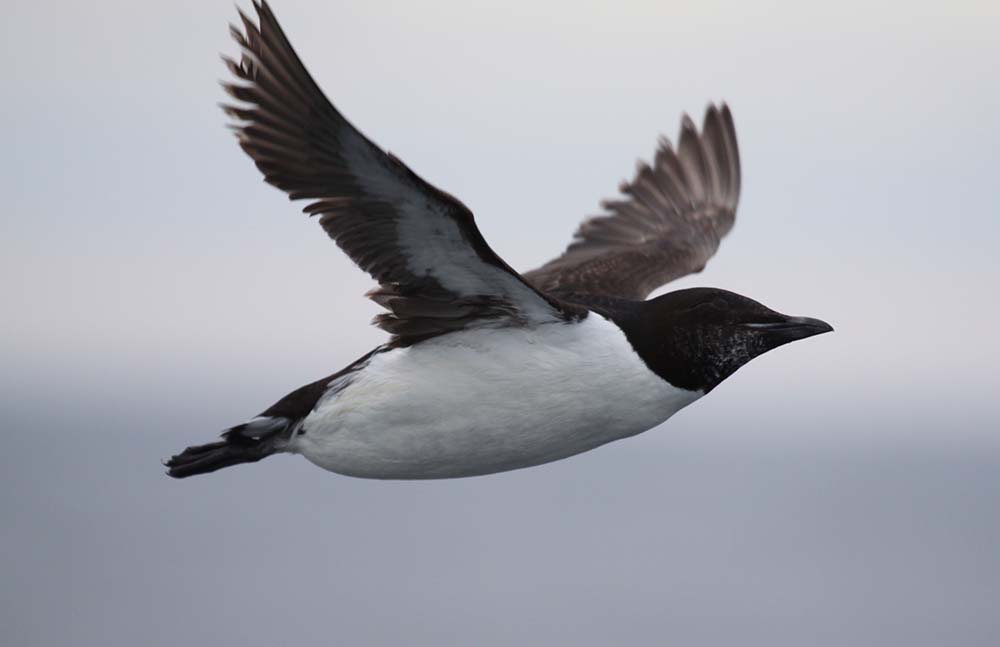 The thick-billed murre can dive to depths of close to 600 feet. It uses its short, stubby wings to "fly" through the water.