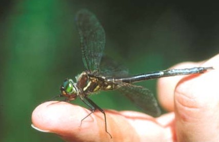 Mocha EmeraldThe dragonflies in this family are large, usually between 1.5 and 3 inches in length. They have bright green eyes, and many species are black with metallic green or yellow markings.