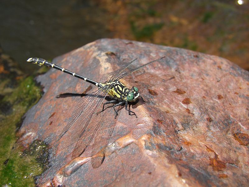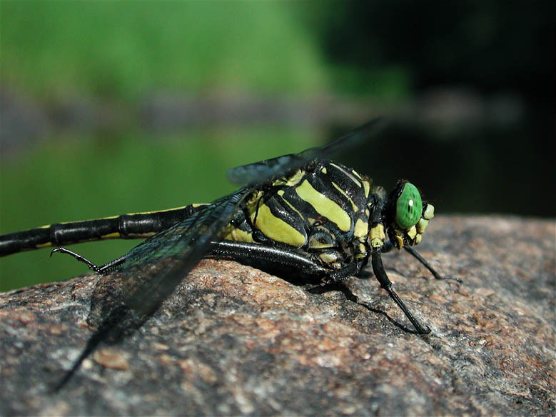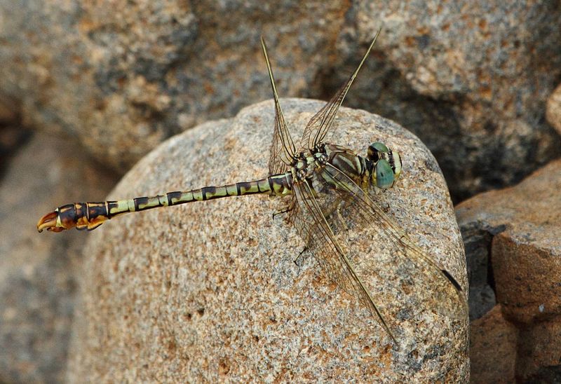 The splendid clubtail is usually found in clear, fast-moving, usually rocky rivers.