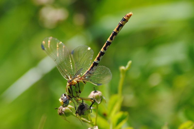 The unicorn clubtail is in ponds, lakes, and small streams with muddy bottoms