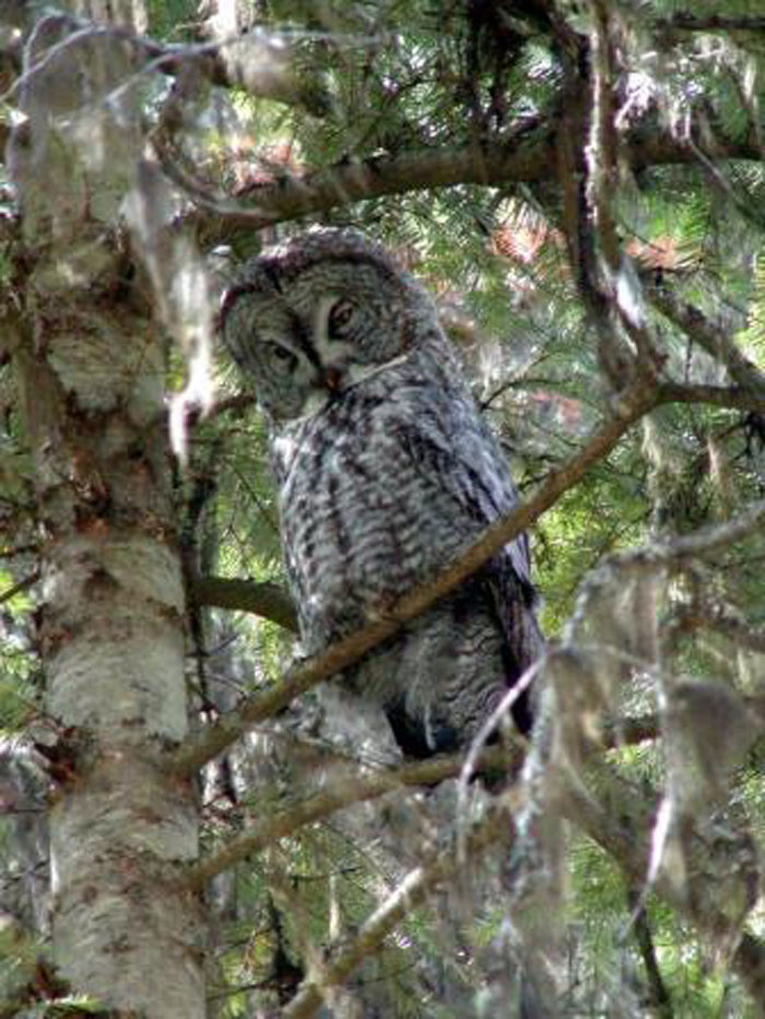 The Great Gray Owl is very reclusive and rarely seen by humans. Often, the only sign a Great Gray Owl is in the area is a "plunge mark", an imprint in the snow from which the owl has taken its prey.