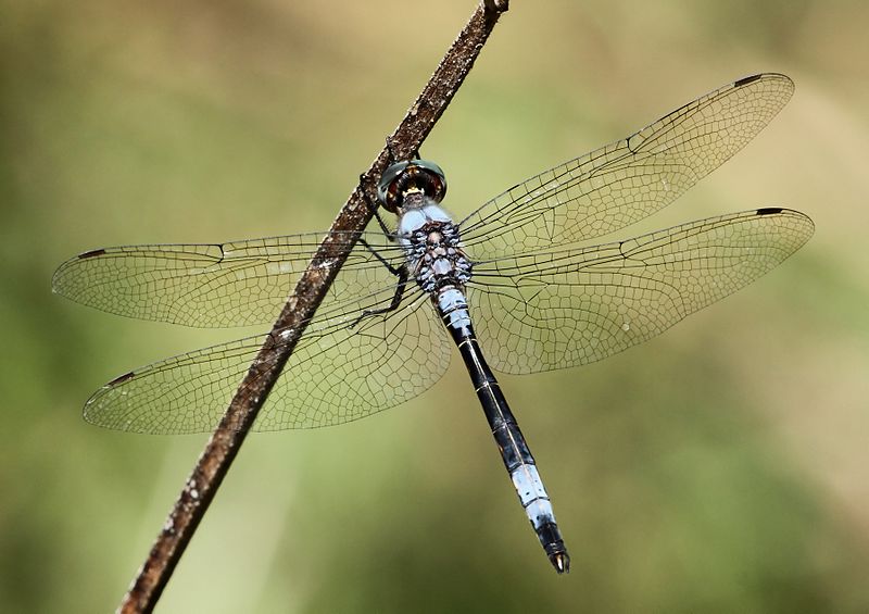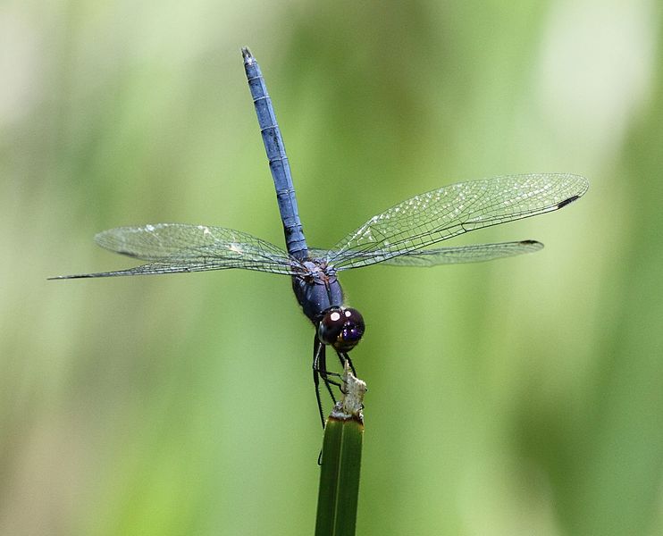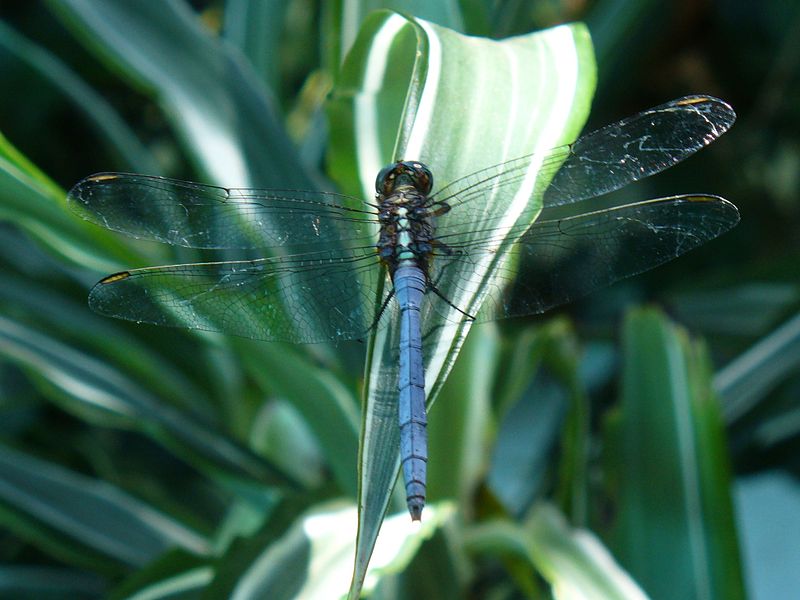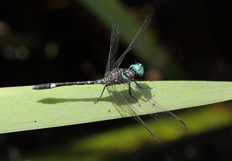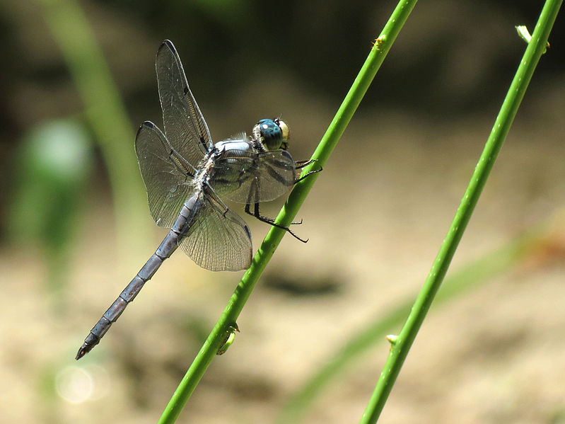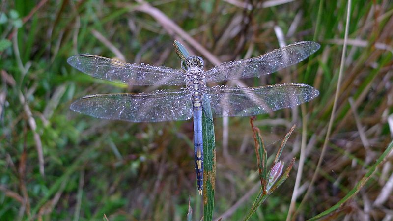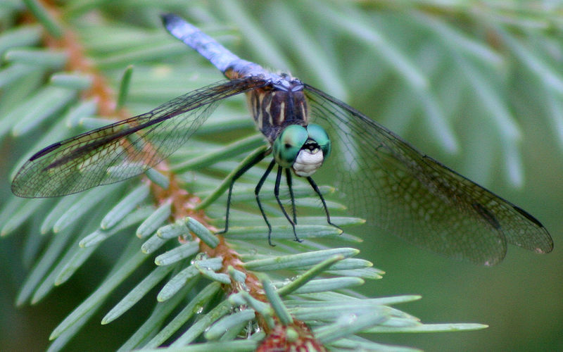 The blue dasher is found near ponds, lakes, marshes, ditches, and slow streams.