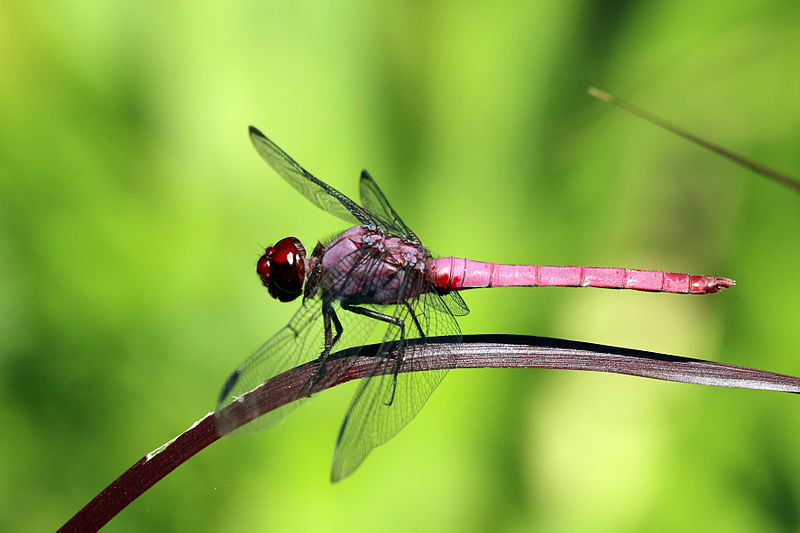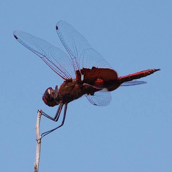 The carmine skimmer is found at temporary and permanent ponds, lakes, ditches, and slow streams.
