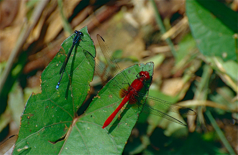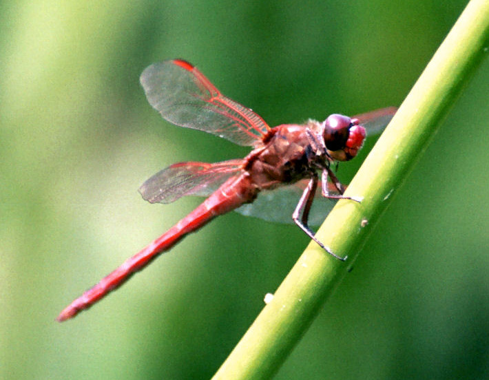 The cardinal meadowhawk is found at small ponds and slow streams.