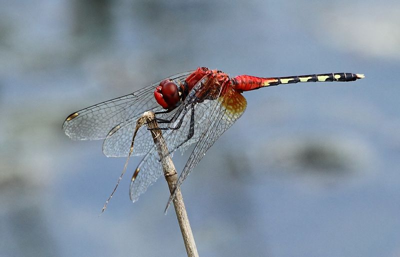 The band-winged meadowhawk is usually found at shallow marshy areas with slow currents.