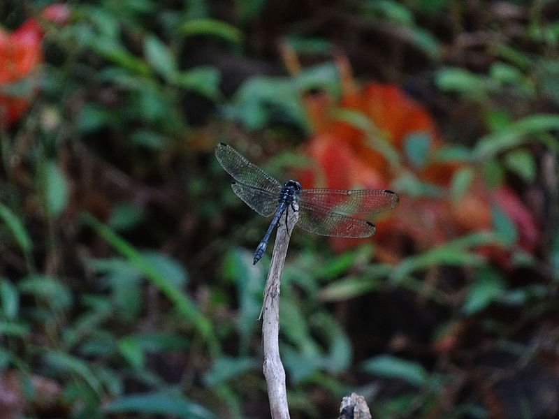 The spot-tailed dasher is found in near still or slow-moving water with emergent vegetation.