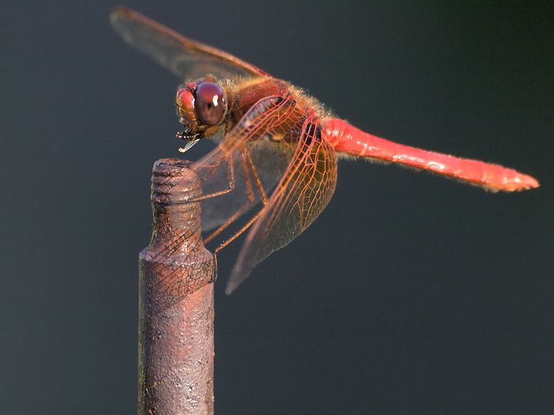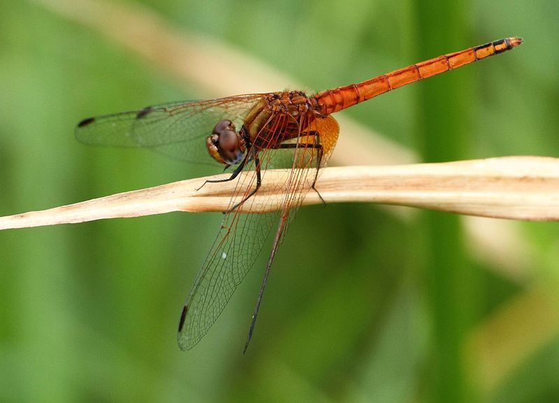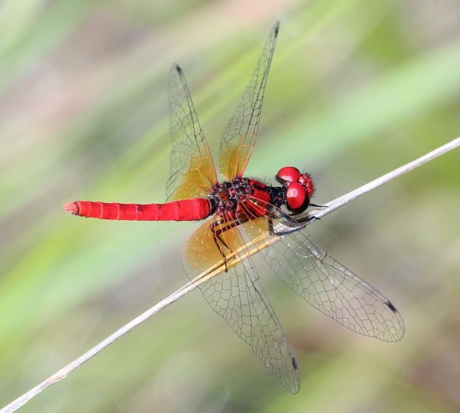 The broad scarlet is found in Africa, southern Europe, the Middle East, and west Asia. It is also known as the common scarlet-darter.