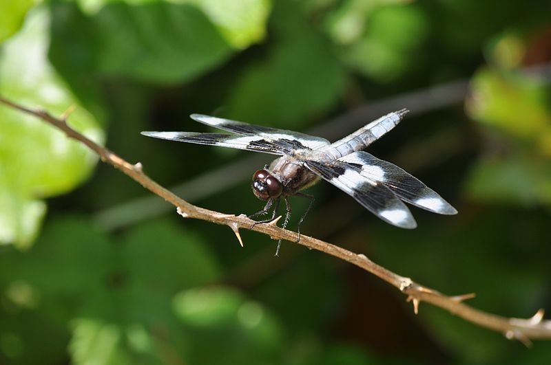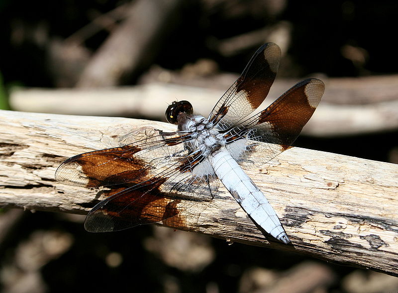The twelve-spotted skimmer gets its name from the brown to black spots on its wings.