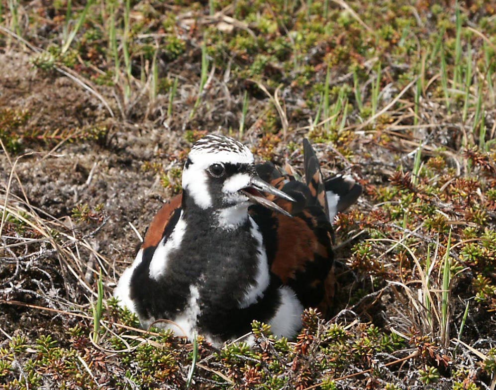 The turnstone gets its name from its habit of turning over stones when it looks for food. It is also sometimes called the seaweed bird because it often feeds among the kelp at low tide. It is a very good swimmer and may spend hours bathing and preening.