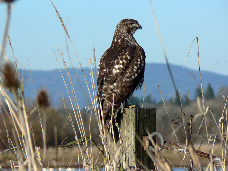 Swainson's hawk is often seen perched on a fence post in a prairie or open range.