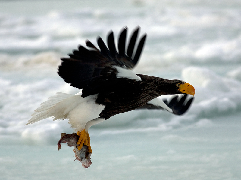 Steller's sea-eagle can have a wingspan of up to eight feet.