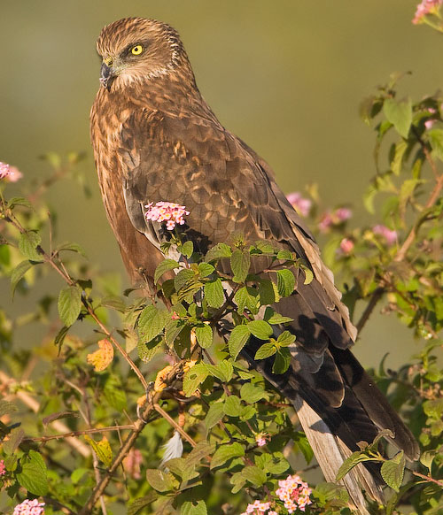 The snail kite frequently perches on bushes.