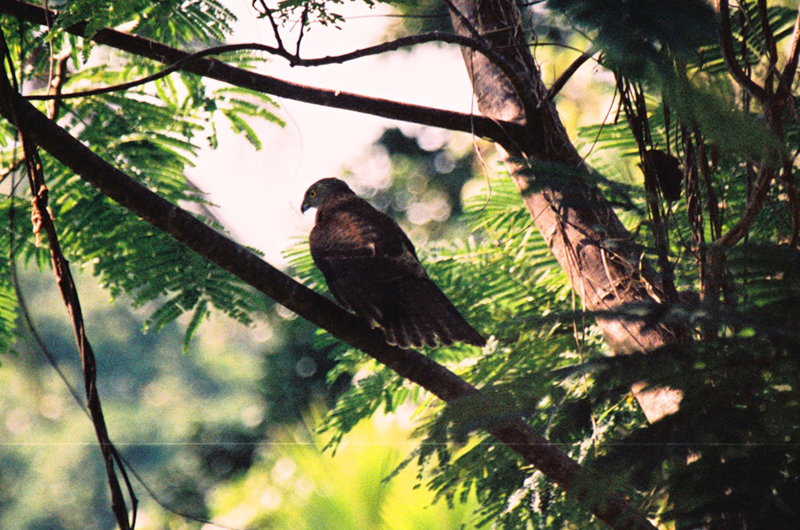 The Great Nicobar Serpent-eagle is a very small eagle with a black crest.