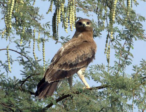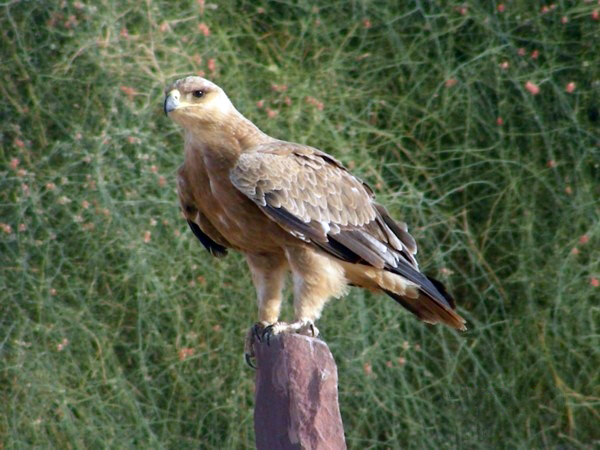 The tawny eagle preys on hares, birds, and lizards.