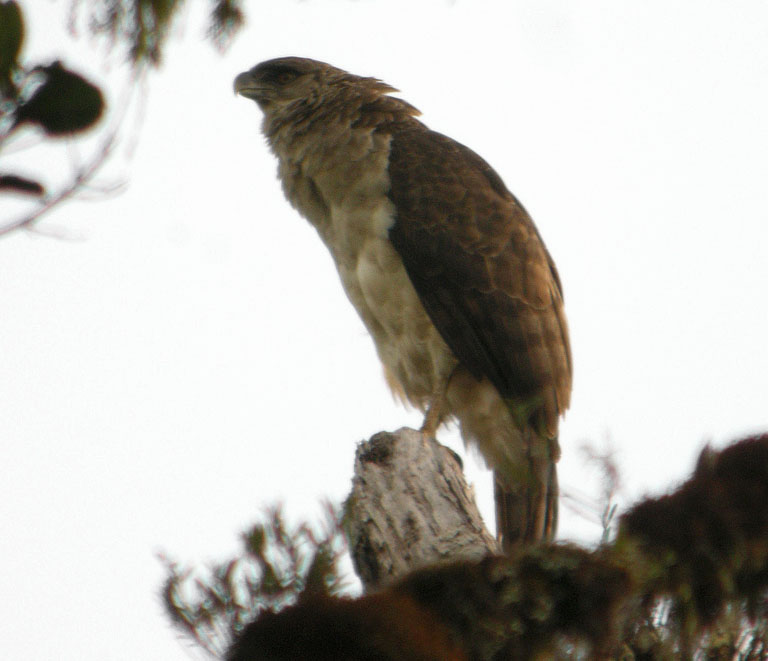 The solitary eagle is found in highland and foothill forests.