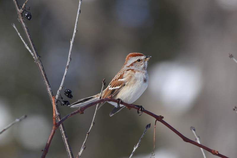Diet The American tree sparrow eats seeds, berries, and insects.