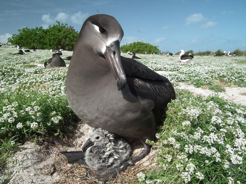 The black-footed albatross is found on open ocean waters and ocean islands.