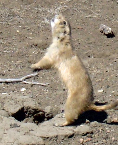 The prairie dog gets most of the water it needs from the plants it eats. It usually eats all the plants right around its burrow. Clearing away the plants around the burrow helps the prairie dog spot predators. In the fall, the prairie dog puts on a layer of fat to help it survive in the winter. The prairie dog doesn't hibernate, but when the winter weather is extremely cold or snowy, it may go into a light hibernation-like sleep and stay in its burrows for a few days. | |