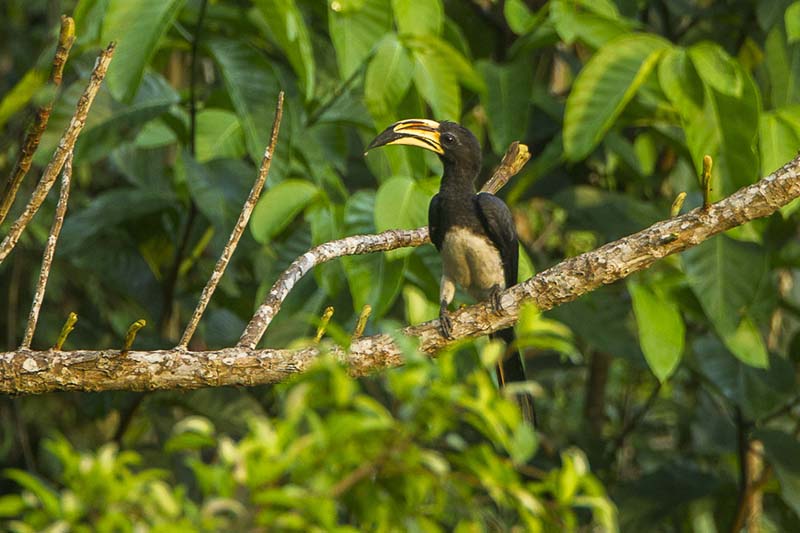 The White-thighed hornbill is found in evergreen and semi-evergreen rainforests.