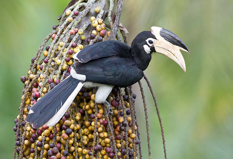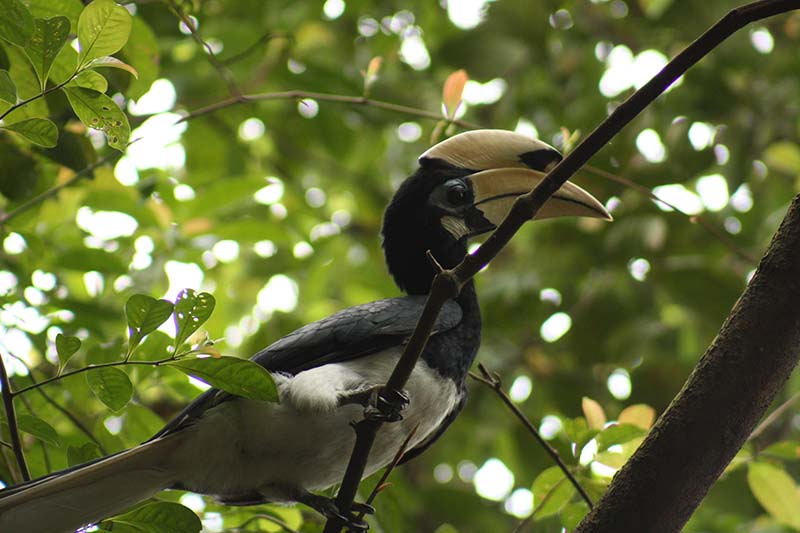 The oriental pied hornbill is found in subtropical and tropical lowland forests.