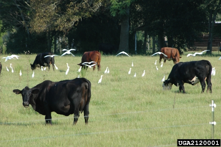 Behavior Cattle egrets are very social. They gather in large colonies of cattle egrets and other bird species. In addition to following livestock, they also follow farm equipment, like tractors, to catch insects that are disturbed.