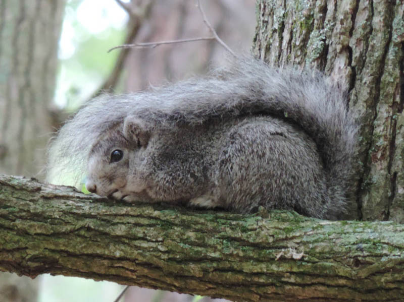 The Delmarva fox squirrel has a bushy tail and is gray with a white belly.