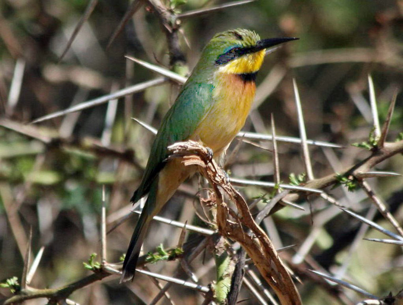 There are 11 families in this order and over 200 species. These birds are small to medium in size and have big heads and small feet with three front toes that are joined for at least part of their length. Many species in this order are very colorful and have unique bills.
