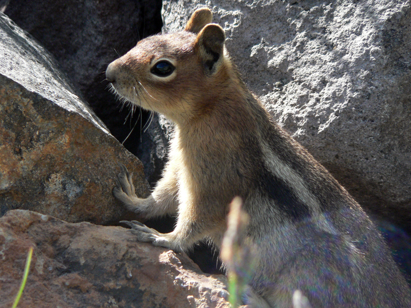 The golden-mantled ground squirrel cleans itself by rolling in the dirt and combing its fur with its teeth and claws.