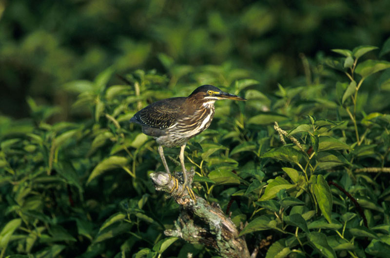 HabitatThe green heron lives in freshwater or brackish water marshes with clumps of trees. |