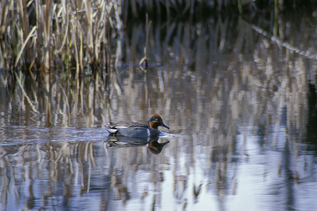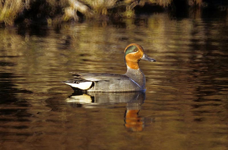 The green-winged teal is found in marshes, ponds, and marshy lakes. |