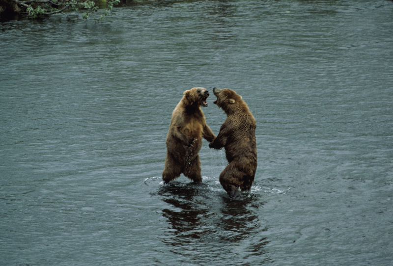 The brown bear is also known as the grizzly bear. Some brown bears have fur that is tipped in a lighter color than the rest of its fur. This gives the fur a grizzled look and is how the bear got the name grizzly bear.