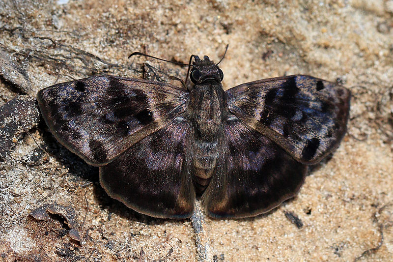 The funereal duskywing is found from Southern California, Arizona, New Mexico, and Texas south to Argentina.