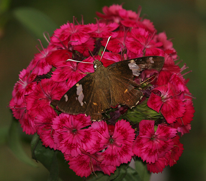 Silver Spotted SkipperThere are about 4,000 species of small to medium sized butterflies in this family. They get the name "skipper" from their flight pattern. They tend to skip from place to place with very fast wing movement!