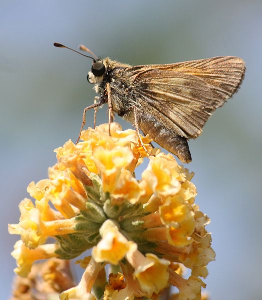 The sachem skipper is found from Virginia west to California and south through Mexico and Central America to Brazil.