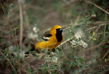 The hooded oriole is a very social bird and often joins flocks of other birds like Bullock's oriole.