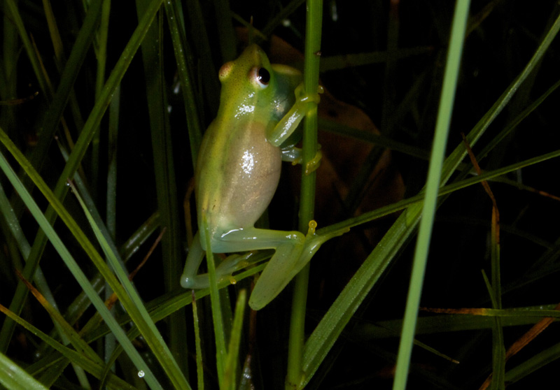 The painted reed frog is active at night. It spends the day resting on reeds or other plants.