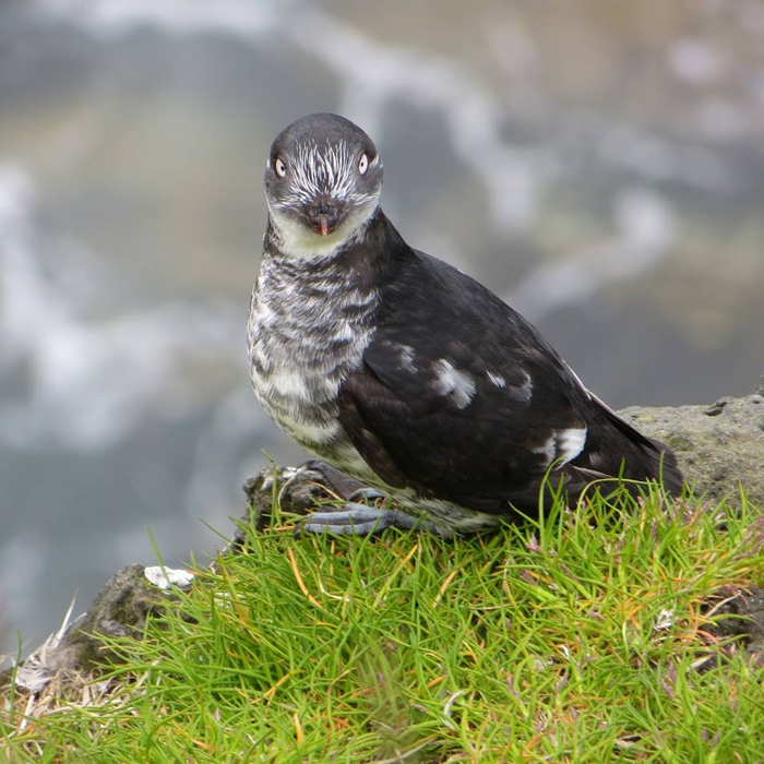 Least AukletThe least auklet is a sparrow-sized seabird. It is about six inches in length. The least auklet is the smallest species in the Alcid family. It has dark brown to black feathers on its back and wings. It has white spotted feathers on its chest and undersides.