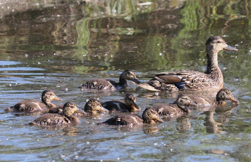 The mallard lives in marshes, lakes, swamps, rivers, streams and ponds.