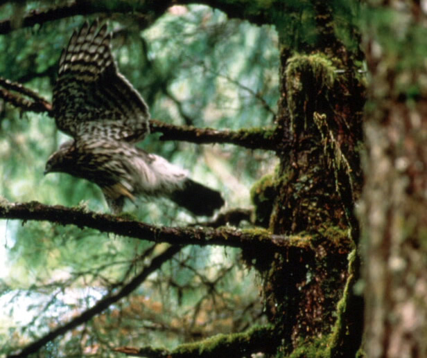 The northern goshawk lives in coniferous and mixed coniferous deciduous forests. |