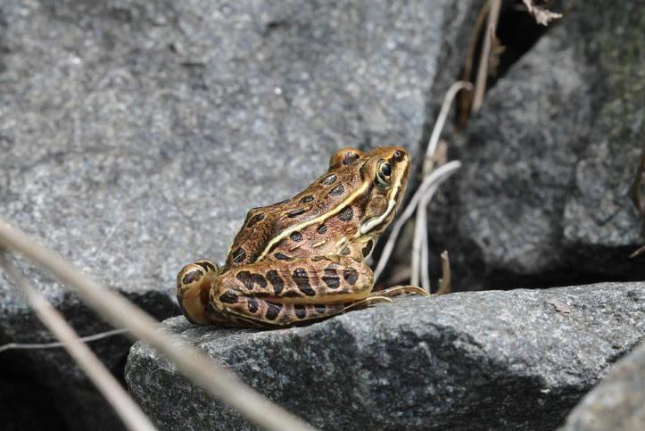 The northern leopard frog is found near streams, ponds, lakes, meadows, fields, rivers, marshes, and other places with slow moving water and lots of vegetation. In the summer, they are often found in open grassy meadows, pastures, or fields, usually a fair distance from the water.
