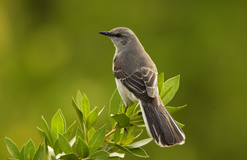 The northern mockingbird lives in open country with thickets, farmland, and desert brush.
