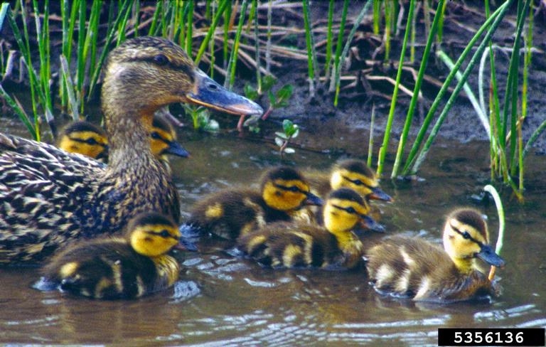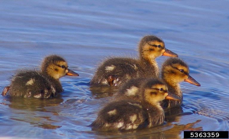 They hatch in about three weeks. Soon after hatching, the female leads her ducklings to the the water and teaches them how to catch insects and find plants to eat. The ducklings fledge in 40 to 70 days.