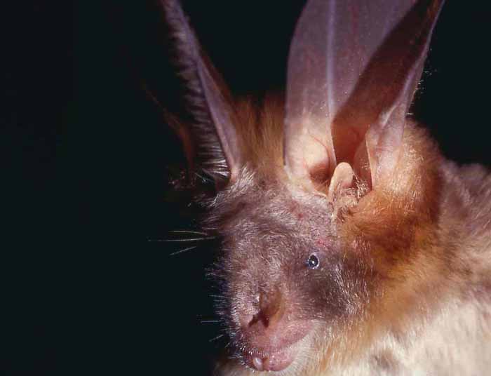 Slit-faced bats have large ears, broad wings, and a long tail. They roost in alone or in small groups in trees, buildings, caves, and animal burrows.