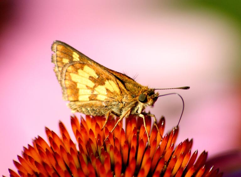 The male Peck's skipper perches in sunny areas and waits for a female. The female lays one egg at a time on the leaves of a host plant.