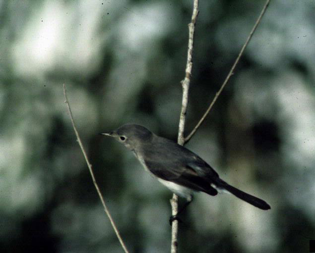 The blue-gray gnatcatcher is about 4-5 inches in length and is bluish-gray on its uppersides and white on its undersides. It has a long, white-edged tail and a white ring around its eyes. It is found throughout most of the United States. The black-tailed gnatcatcher is about 4 inches in length and is found in the deserts of the Southwestern United States. There is a subspecies of the California gnatcatcher (Polioptila californica), the Coastal California gnatcatcher (Polilptila californica californic) that is found in extreme southwestern coastal California. It is an endangered species. The black-capped gnatcatcher is found in southeastern Arizona. It is 4-5 inches in length and is bluish-gray with a black cap on its head.
