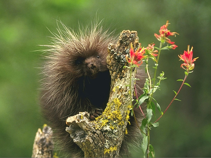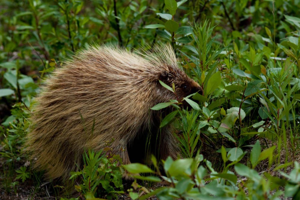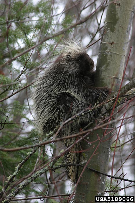 The North American porcupine lives in coniferous, deciduous, and mixed forests. In the west, it is found in scrubby areas.