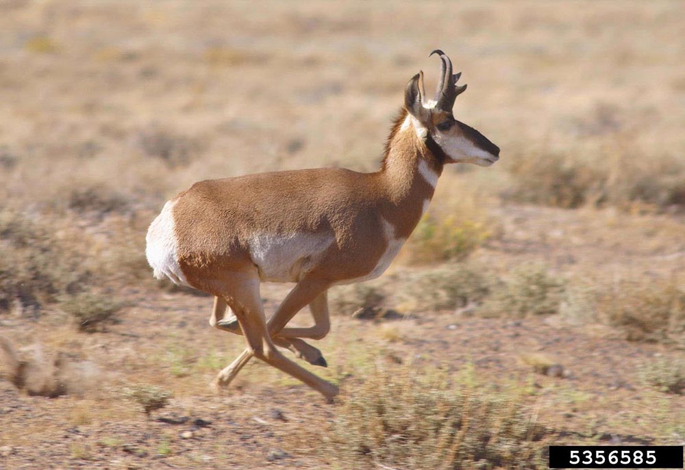 The pronghorn is the fastest animal in the Western Hemisphere. It can run at speeds of up to 60 miles per hour, and it can run long distances at speeds of 30-40 miles per hour. It can make bounds of up to 20 feet when it is running. When the pronghorn runs, its mouth is open so it can breath in extra oxygen. Speed is important because the pronghorn lives in open areas, and there is no place to hide from a predator! It has to be able to run away!